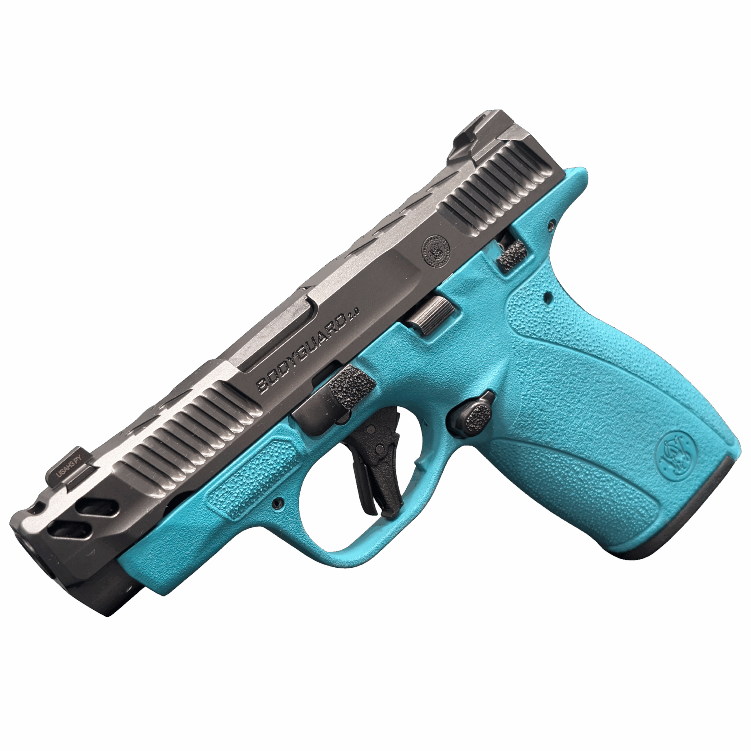 SMITH & WESSON PC BODYGUARD 2.0 CARRY COMP AZTEC TEAL FRM 380ACP PISTOL 3.1″ M.S 1-10RD, 1-12RD MAG